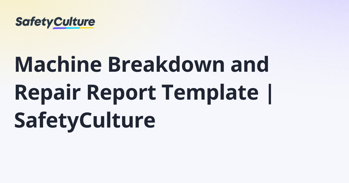 Machine Breakdown and Repair Report Template | SafetyCulture | Free ...
