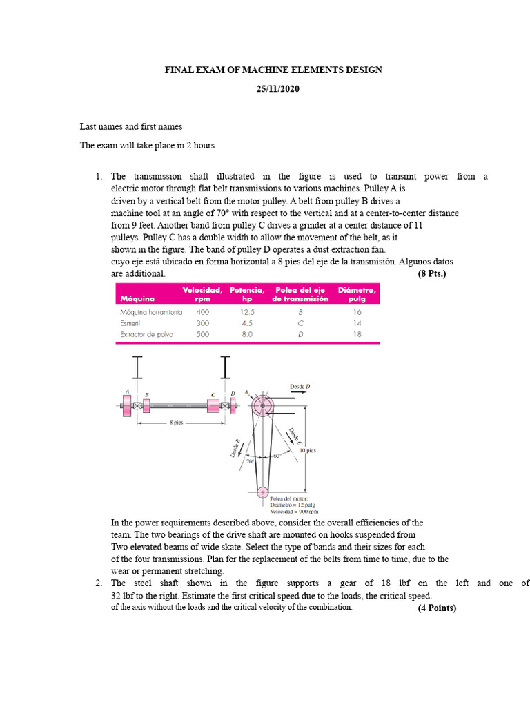 Machine Elements Design Final Exam | PDF | Belt (Mechanical) | Gear