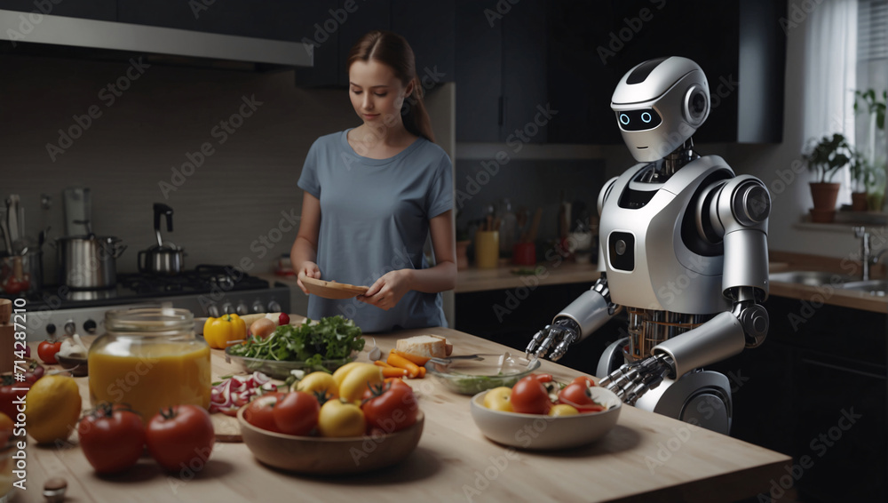 Chef Using Robot for Meal Prep in Modern Kitchen To showcase the ...