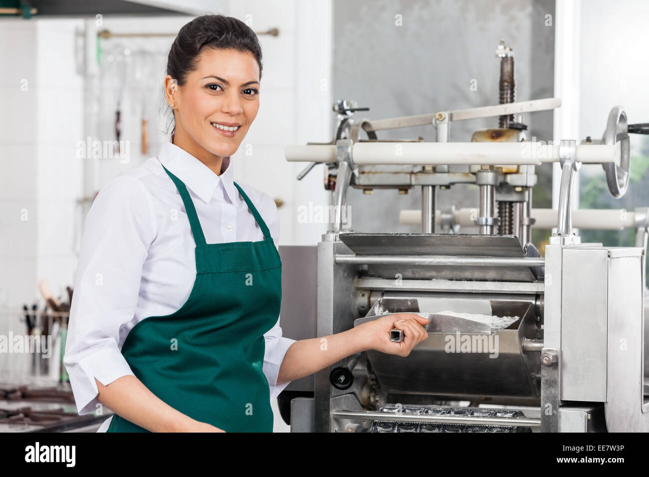 Female Chef Processing Spaghetti Pasta Sheet In Machine Stock Photo - Alamy