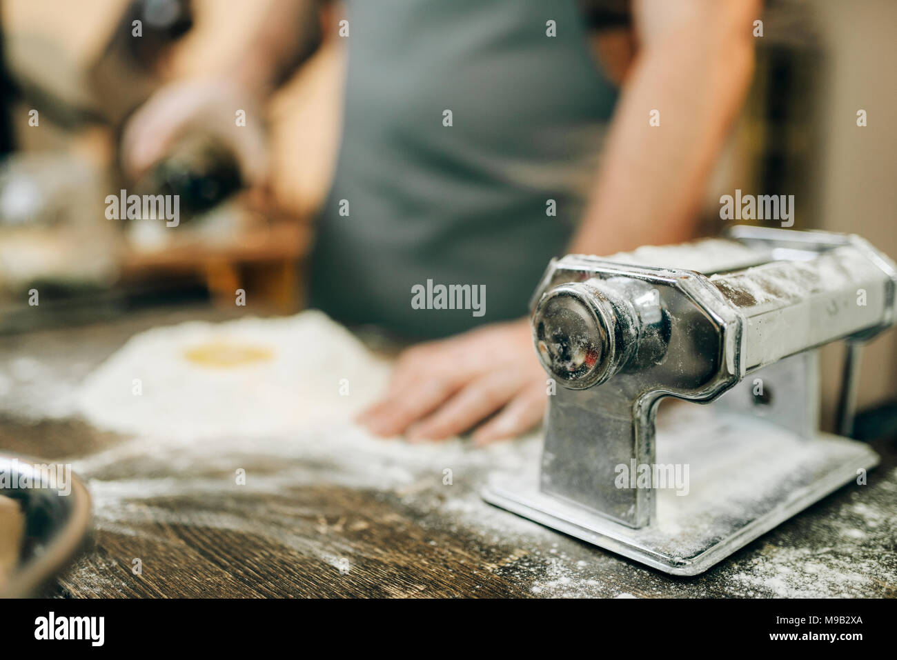 Happy Chef Using Ravioli Pasta Machine At Kitchen Stock Photo - Alamy