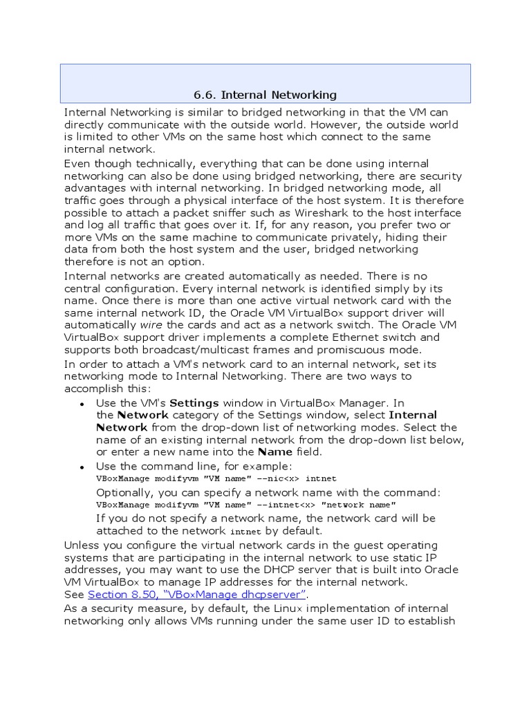 6.6. Internal Networking: Network From The Drop-Down List of Networking ...