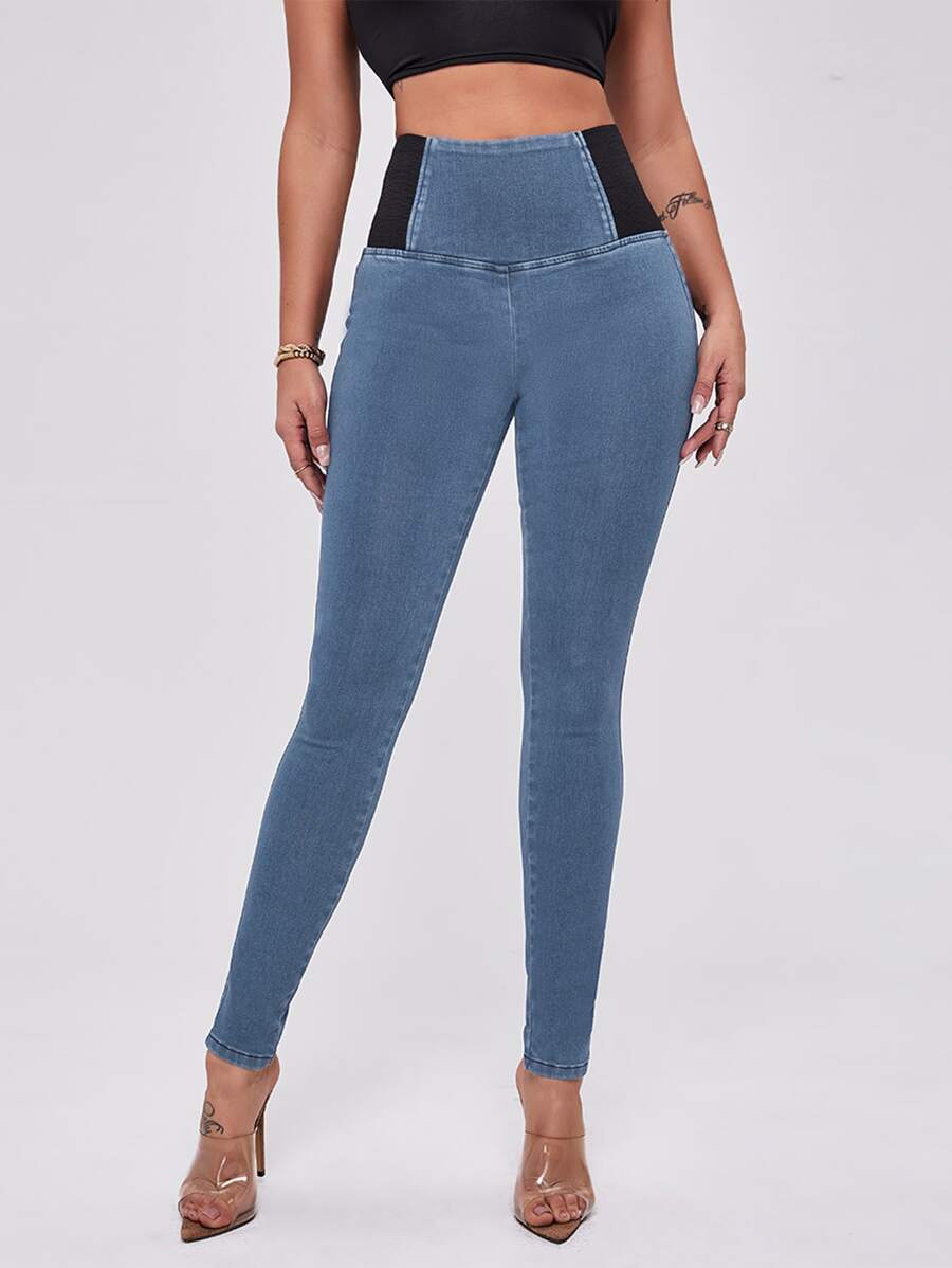 SHEIN Privé Curvy Colour Block Wide Waist Jeggings | SHEIN UK