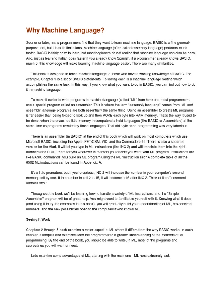 Why Machine Language | PDF | Basic | Computer Program