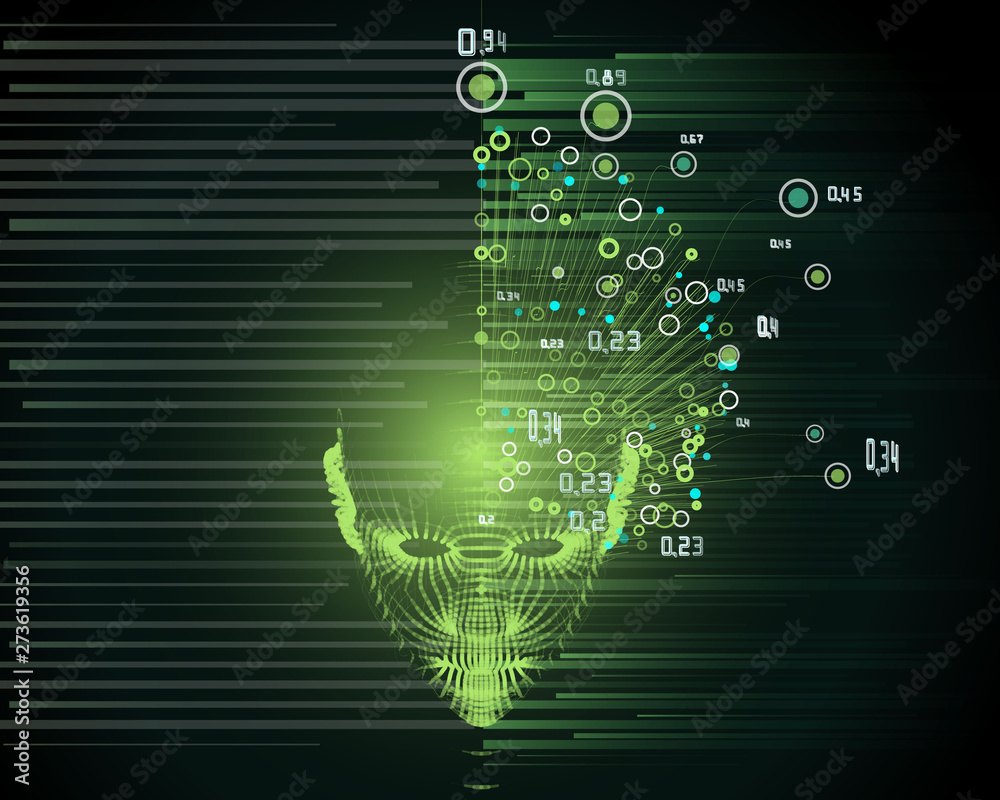 Womans Head Grid And Big Data Concept Abstract Artificial Intelligence ...