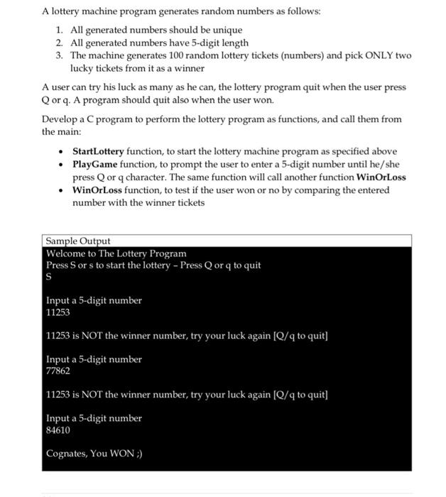 Solved A lottery machine program generates random numbers as | Chegg.com