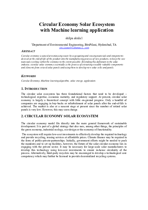 (DOC) Circular Economy Solar Ecosystem with Machine learning application