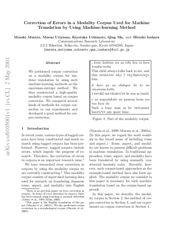 Correction of Errors in a Modality Corpus Used for Machine Translation ...