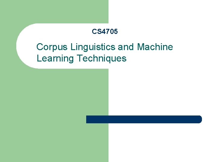 CS 4705 Corpus Linguistics and Machine Learning Techniques