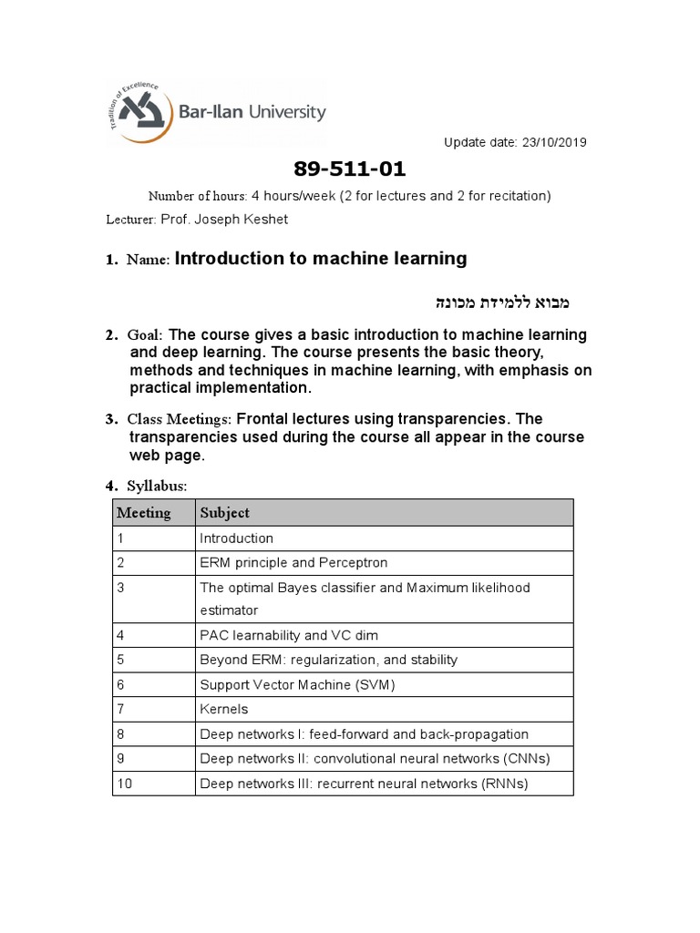 Intro to Machine Learning Course 4350702 | PDF | Machine Learning ...
