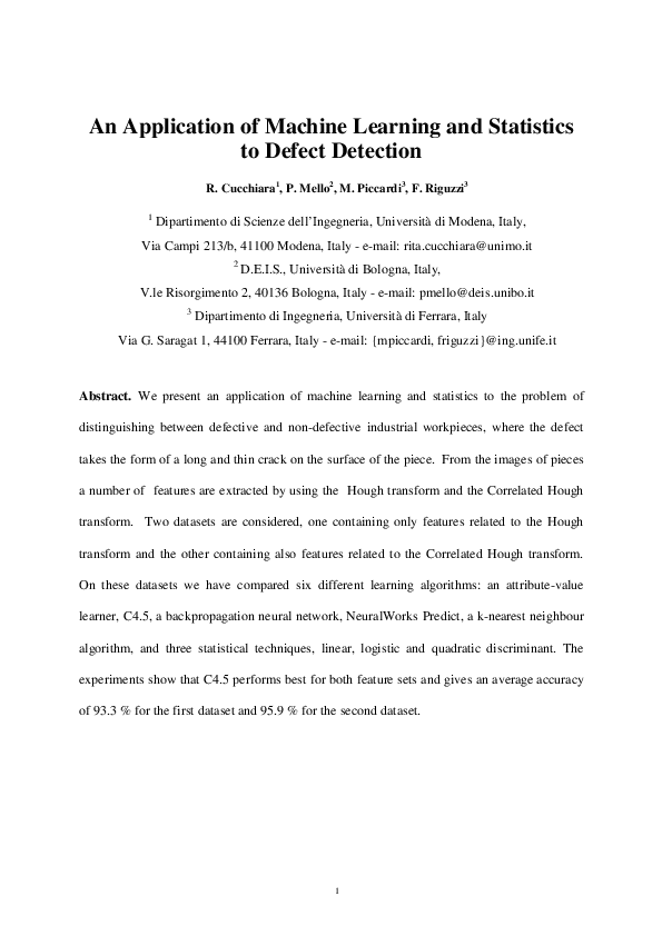 (PDF) Using machine learning approaches to perform defect detection of ...