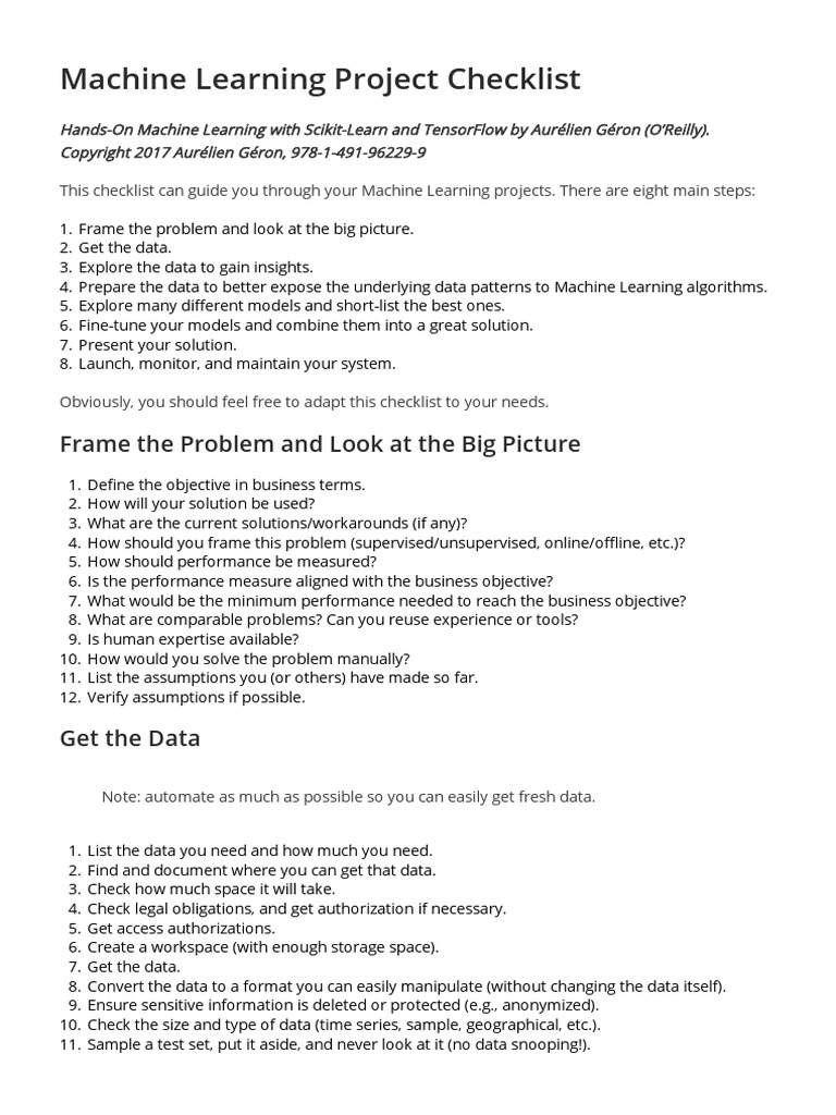 Machine Learning Project Checklist | Download Free PDF | Machine ...