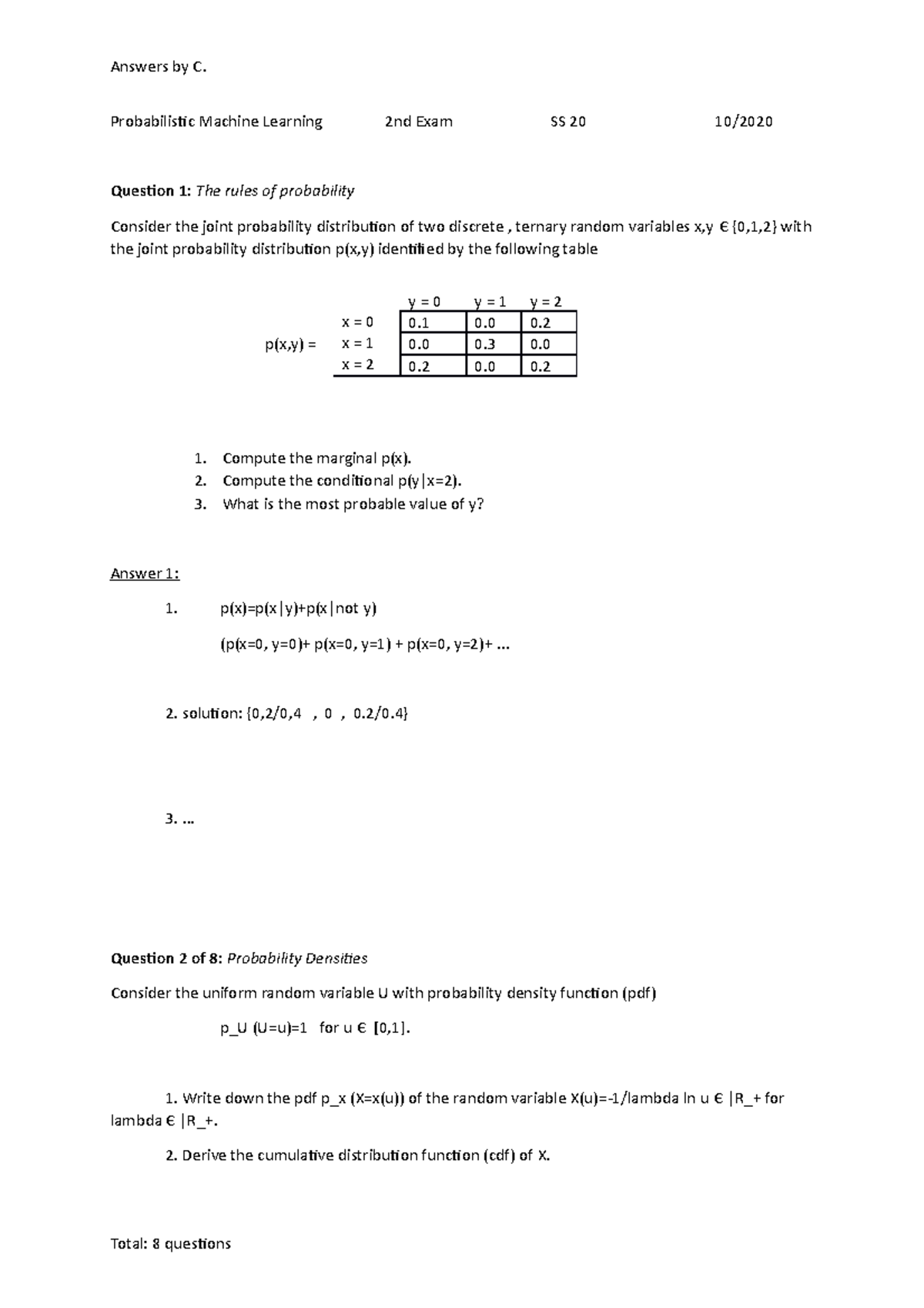 Practice Exam with solutions - Machine Learning 2020 Practice Exam A ...