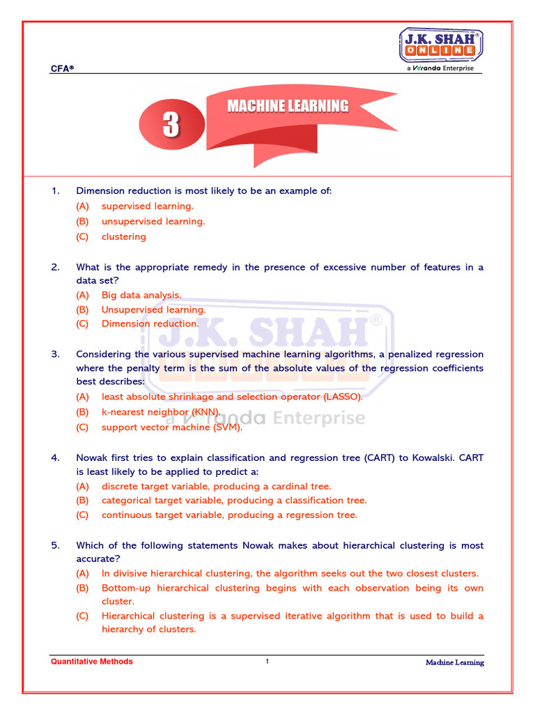 CFA Machine Learning Exam Questions | PDF | Machine Learning ...