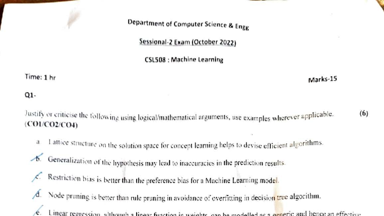 KCA054 Machine Learning Final Exam Question Paper 2023 - Studocu