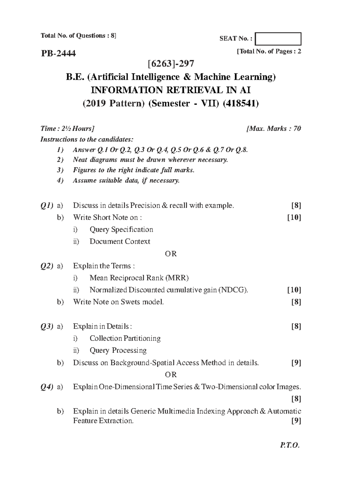 B.E. (Artificial Intelligence Machine Learning) Exam Paper (2019 ...