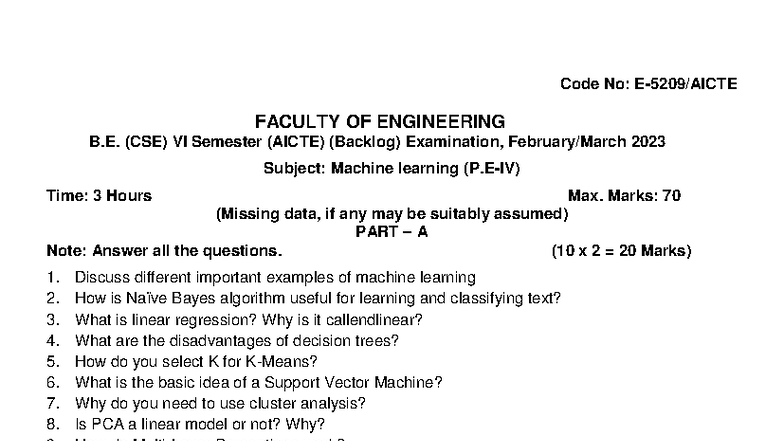 Machine Learning Exam Notes - B.E. (CSE) VI Sem (2023) - Studocu