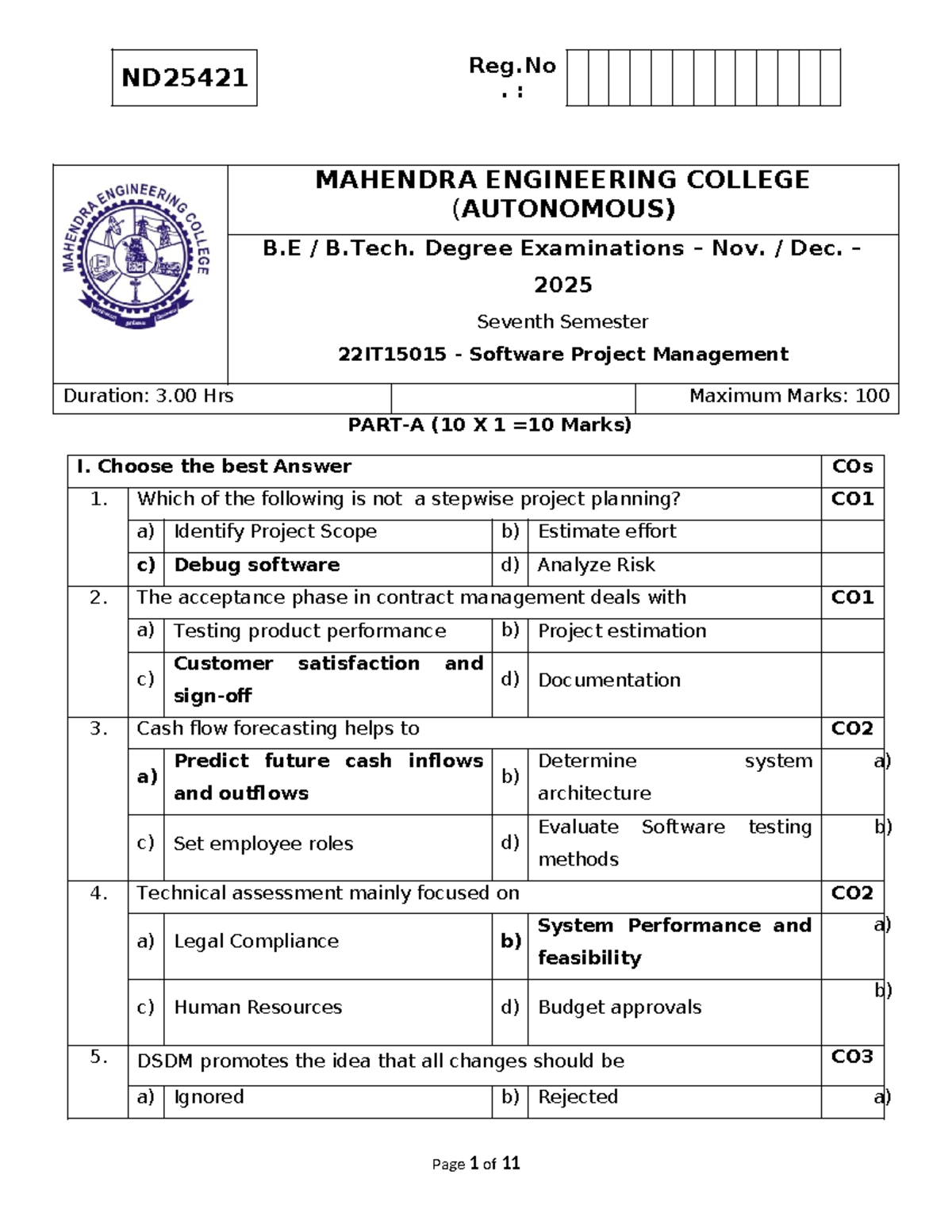 22IT15015 - Software Project Management Final Exam Guide - Studocu