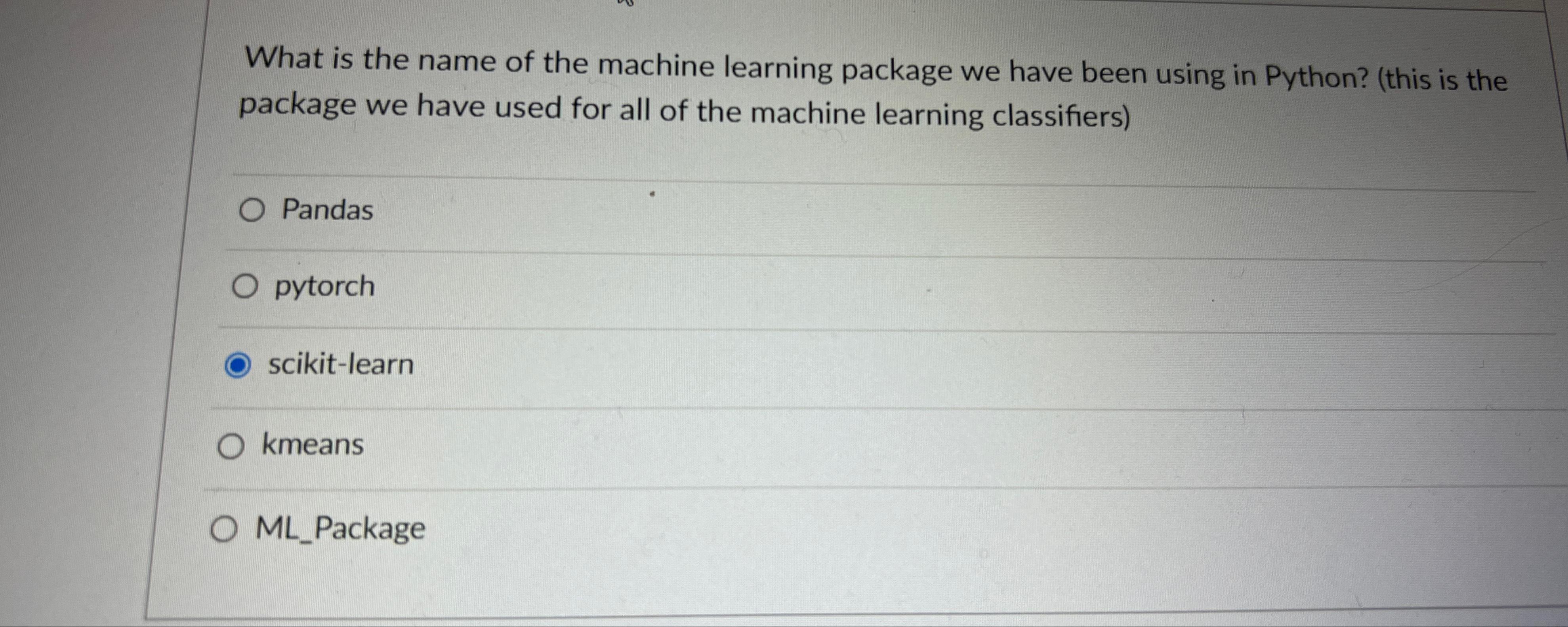 Solved What is the name of the machine learning package we | Chegg.com