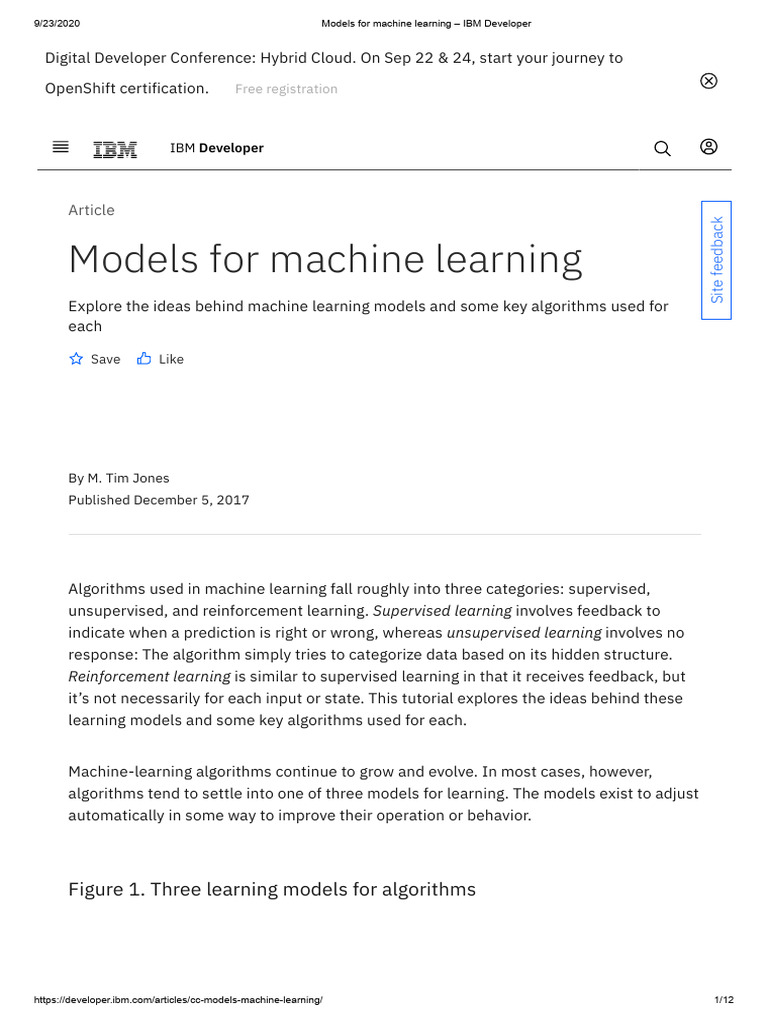 Models For Machine Learning - IBM Developer | PDF | Cluster Analysis ...