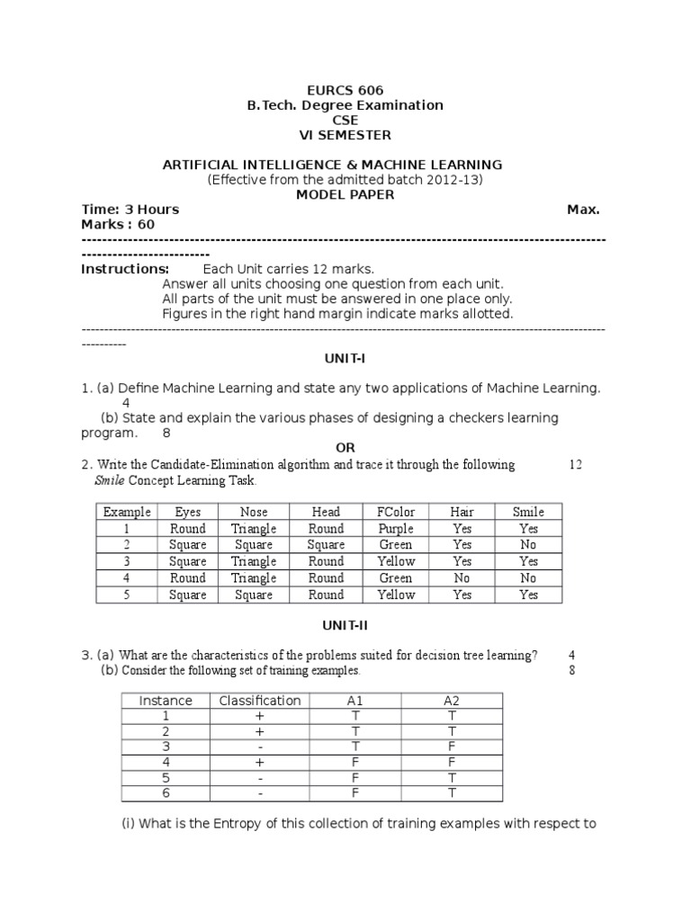 MACHINE LEARNING (BCS602) VTU MODEL QUESTION PAPER 1 & 2 - Studocu