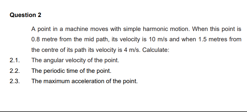 Solved Question 2 A point in a machine moves with simple | Chegg.com