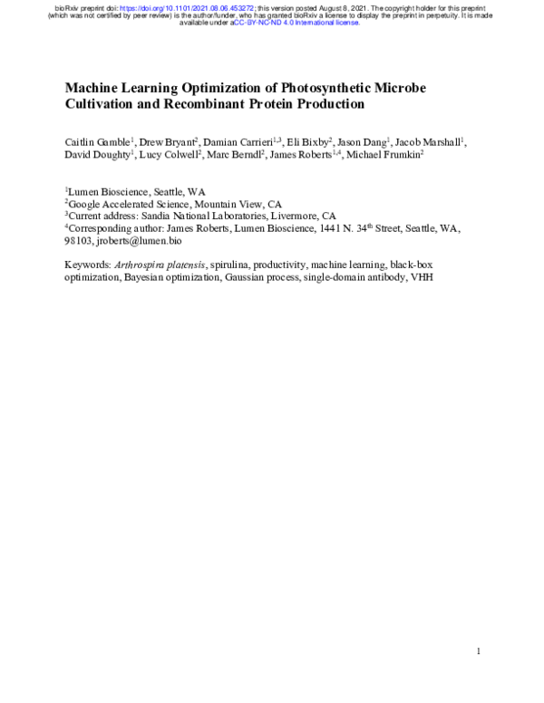 (PDF) Machine Learning Optimization of Photosynthetic Microbe ...