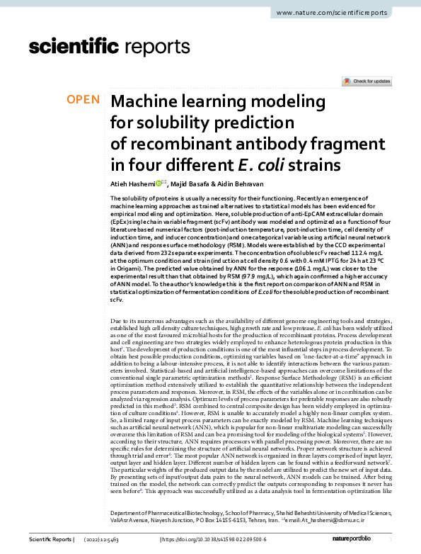 Machine learning modeling for solubility prediction of recombinant ...