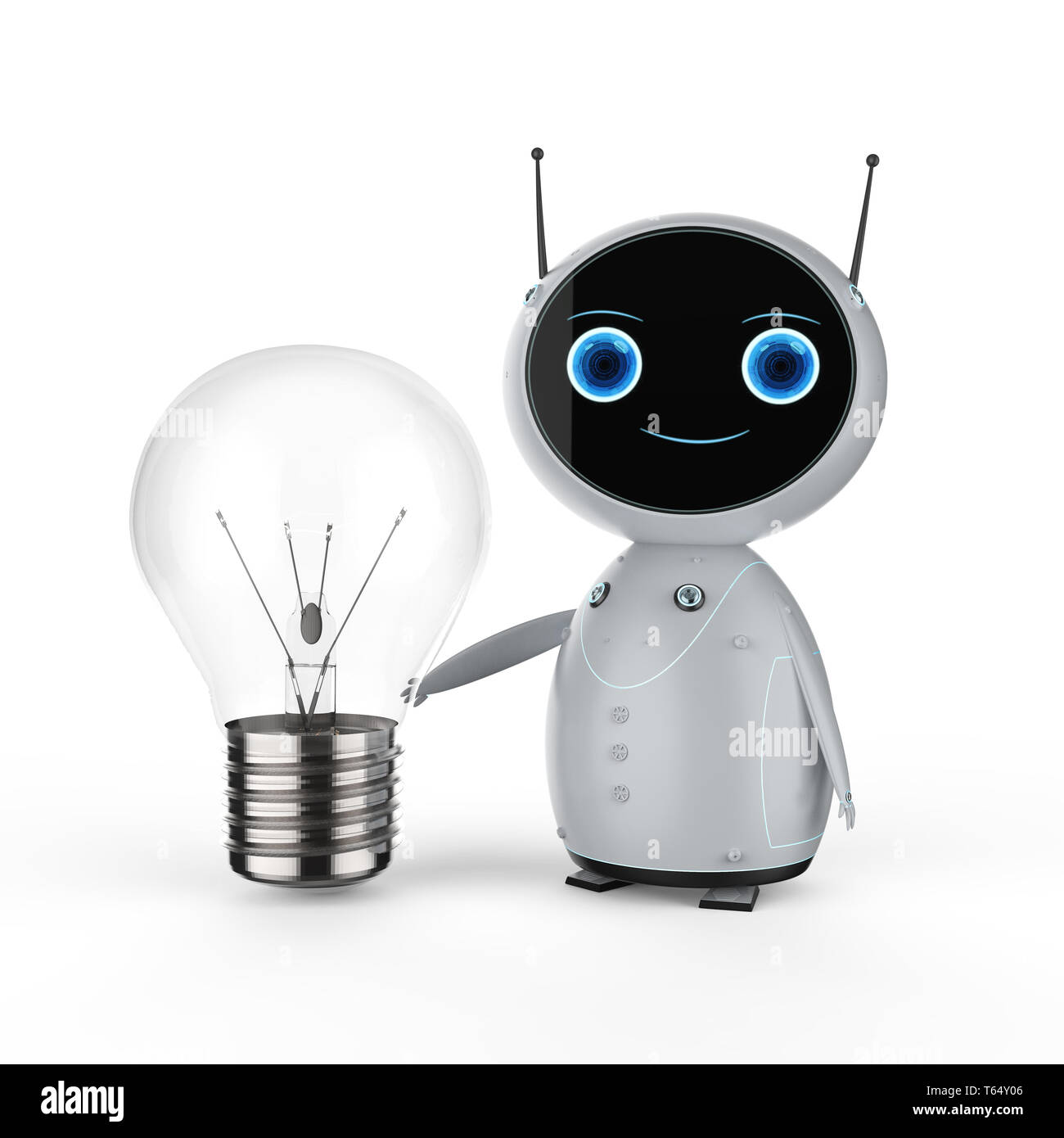 Machine learning concept with 3d rendering robot with lightbulb Stock ...