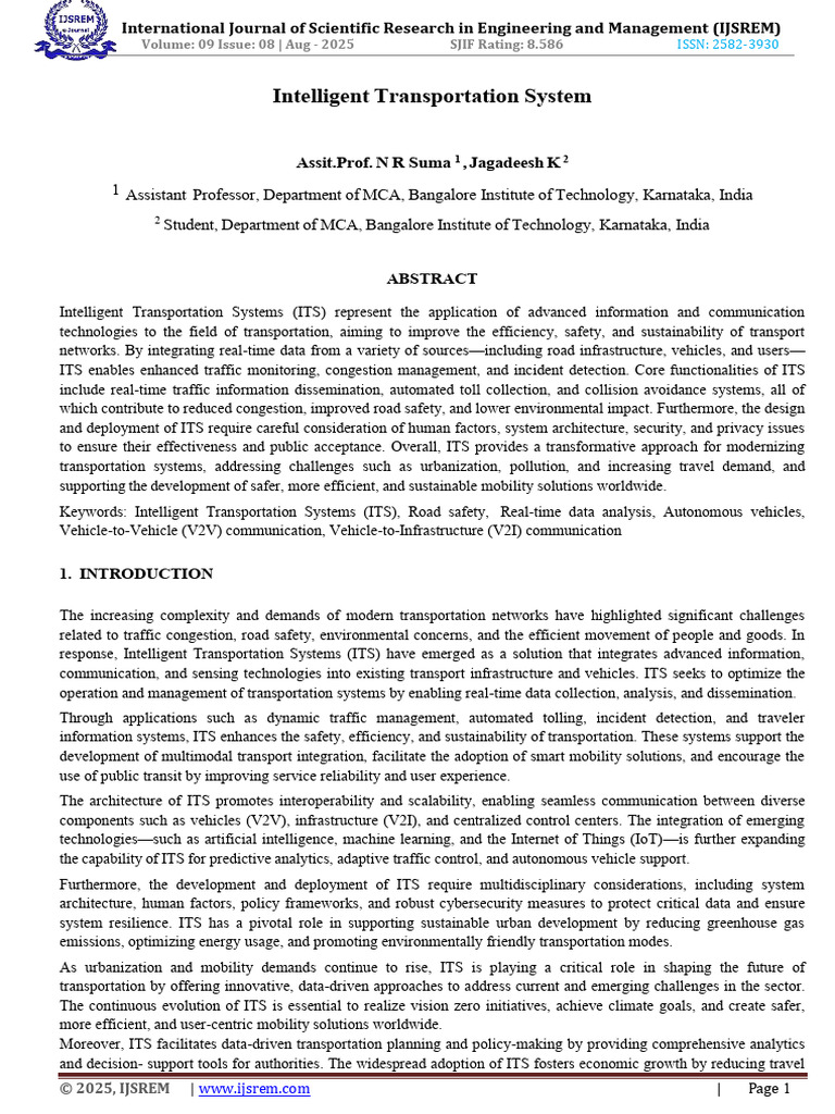 (PDF) Intelligent Transport System Using Machine Learning