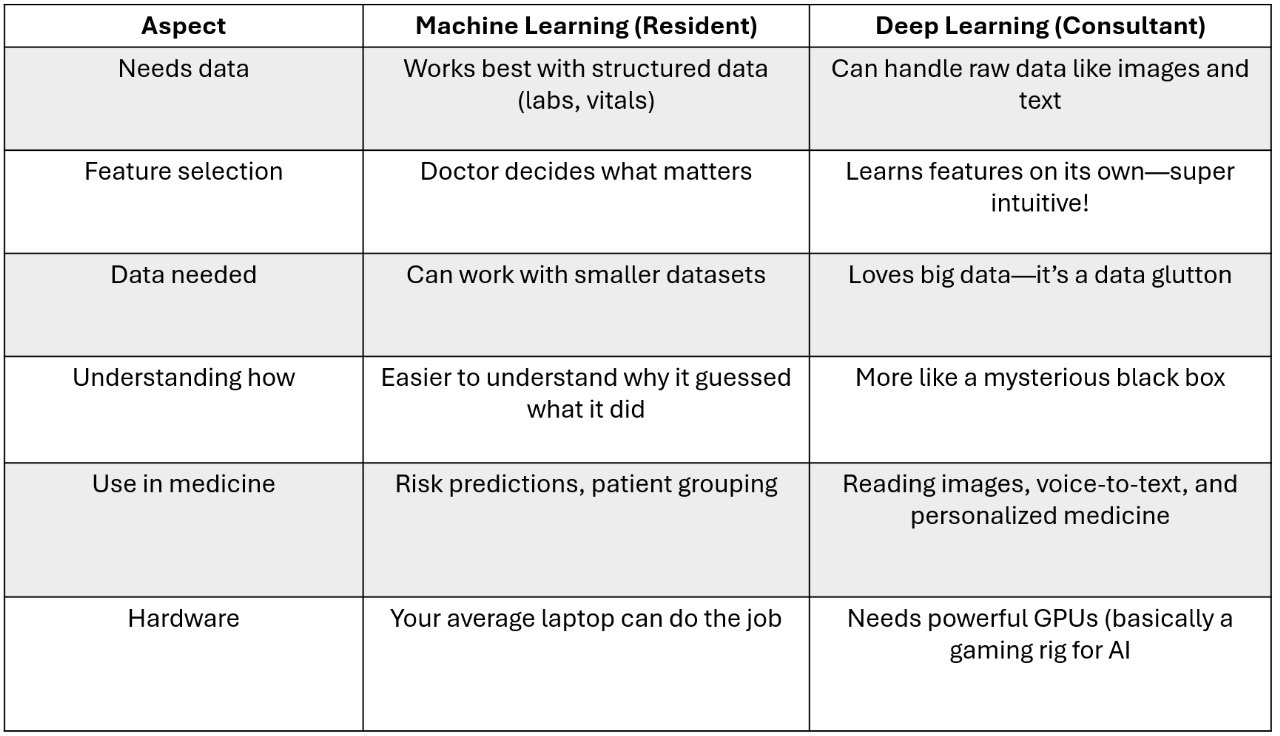 Machine Learning vs. Deep Learning: A Simple Analogy for the Medical Mind