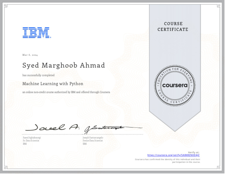 Completed IBM Machine Learning with Python Certification I’m excited to ...