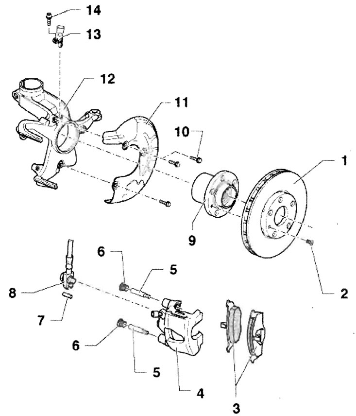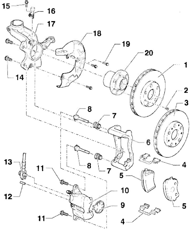 Front brake repair — disc brake caliper FS-III (Skoda Fabia 2, 2007 ...