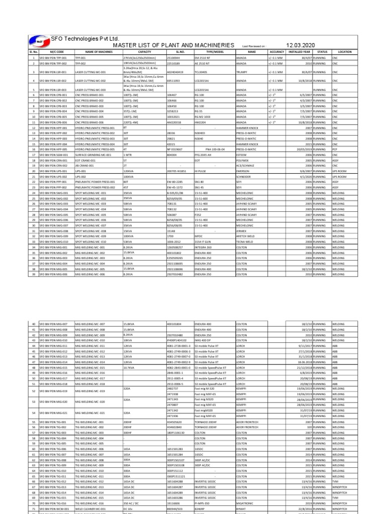 Master List of Machine | PDF