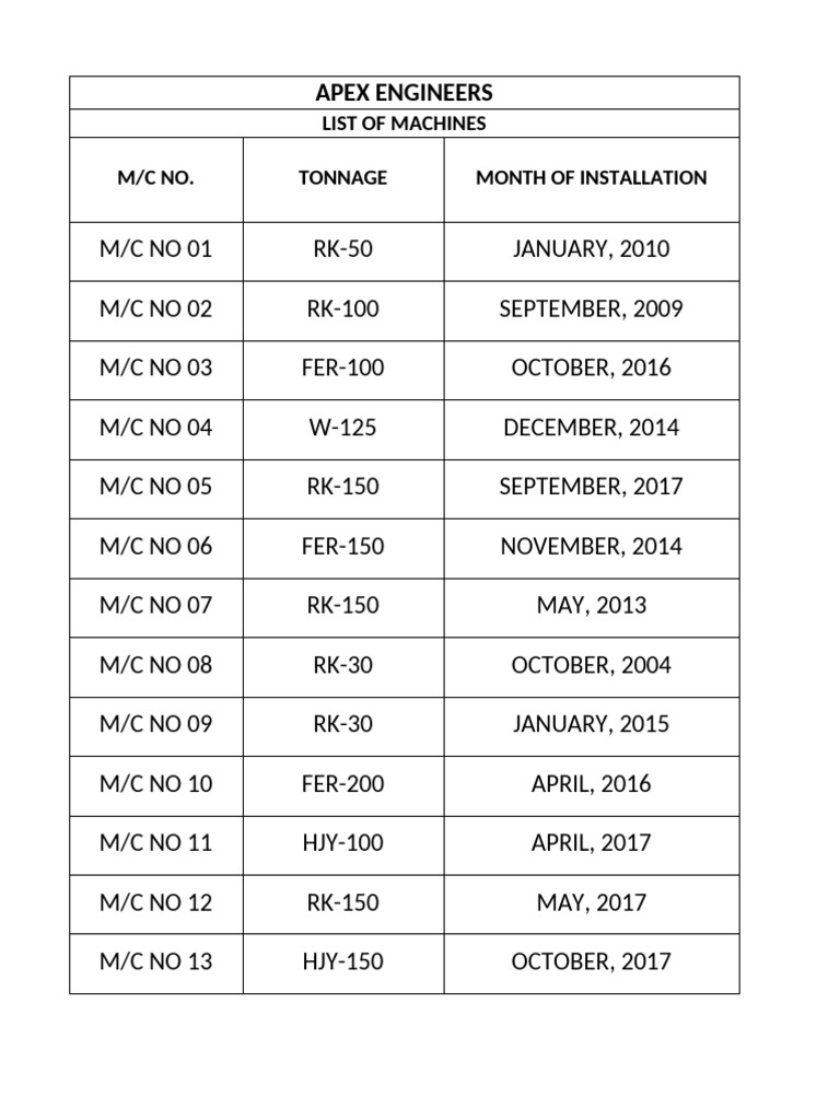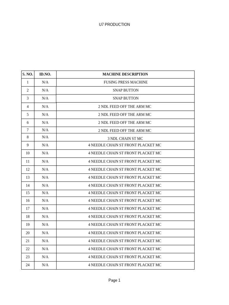 ML-04 Master List of Production Machines | PDF | Design | Production ...