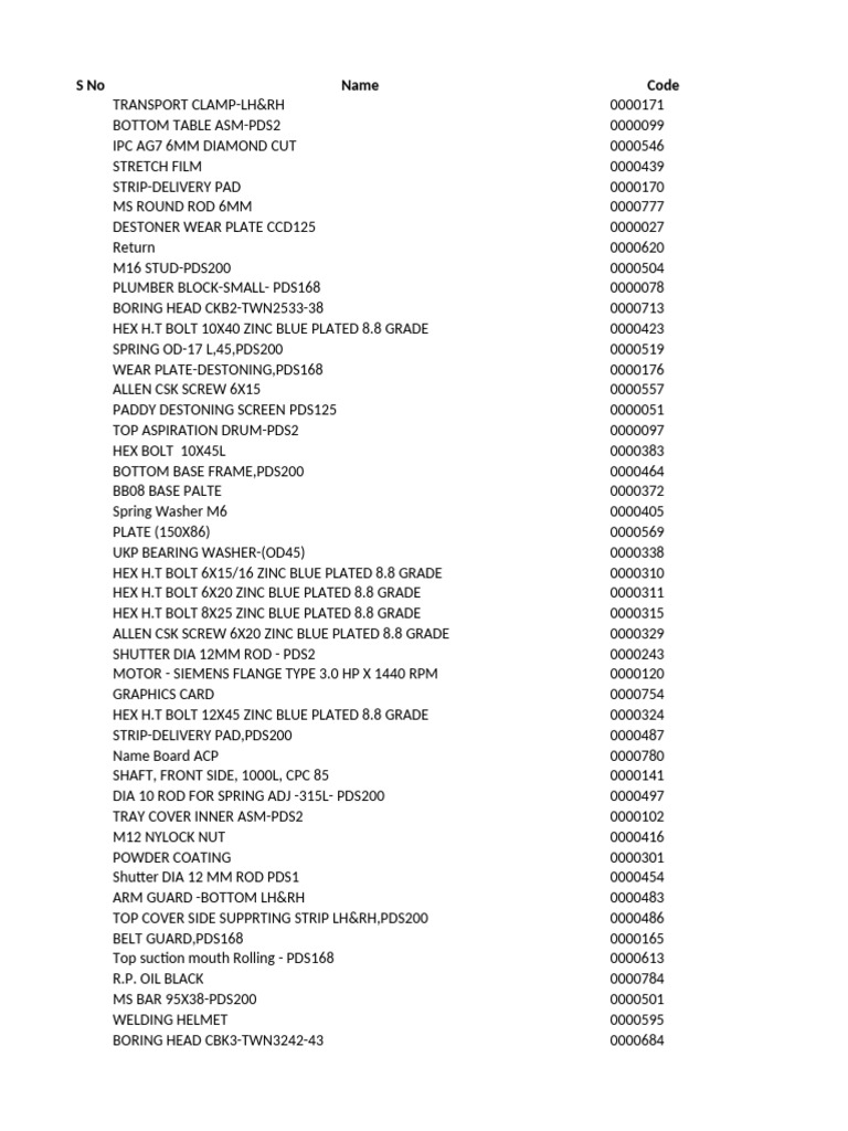 Bill of Materials - Master List - Machinery | PDF