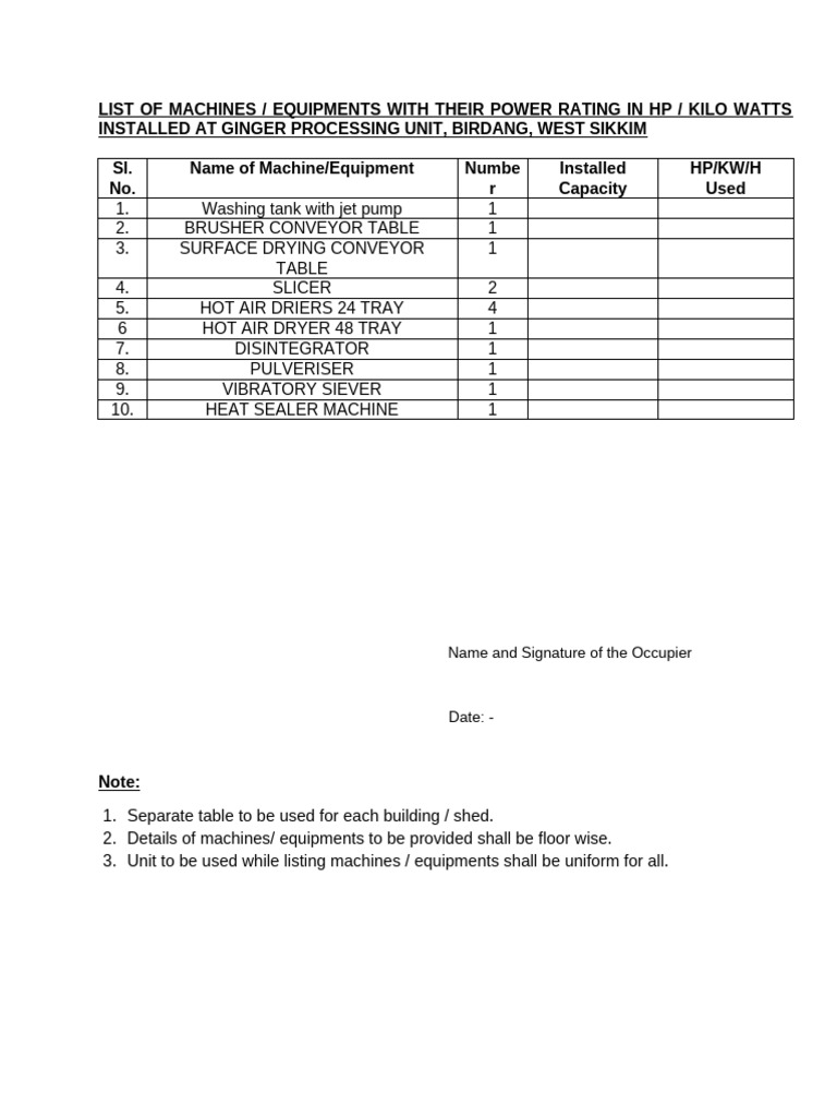 List Of Equipment Format at Marilyn Millender blog
