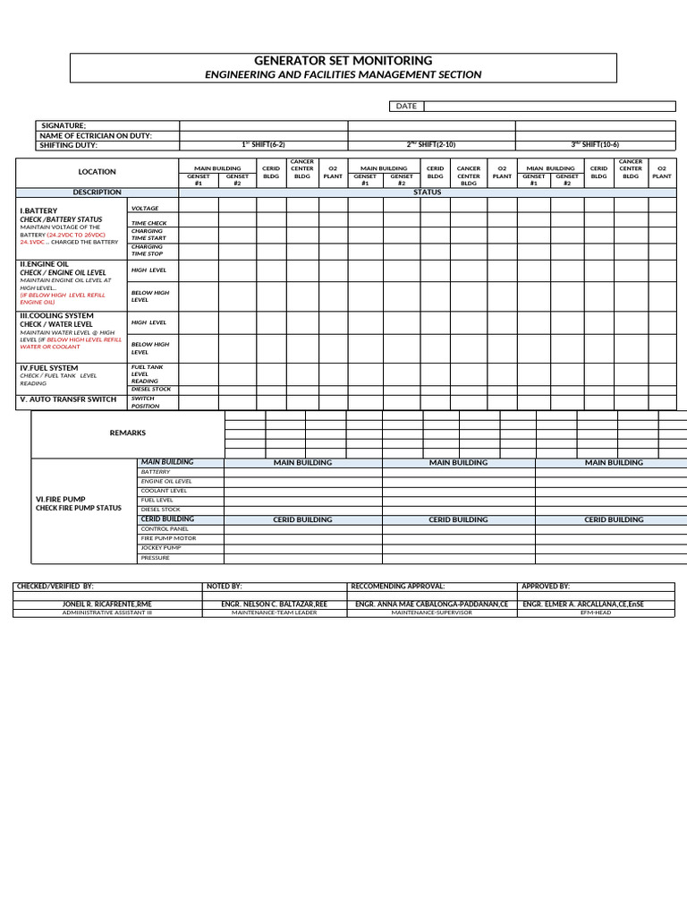 GENSET Monitoring Form ..REVISED | PDF | Manufactured Goods ...