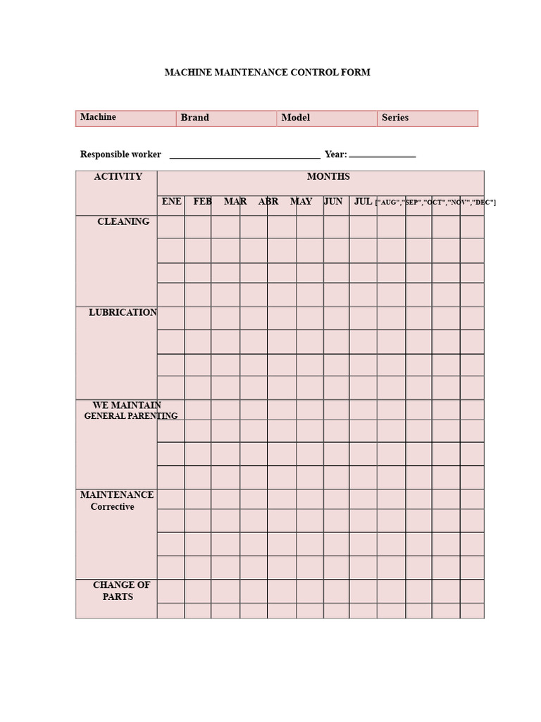 Maintenance Control Sheet For Machines | PDF