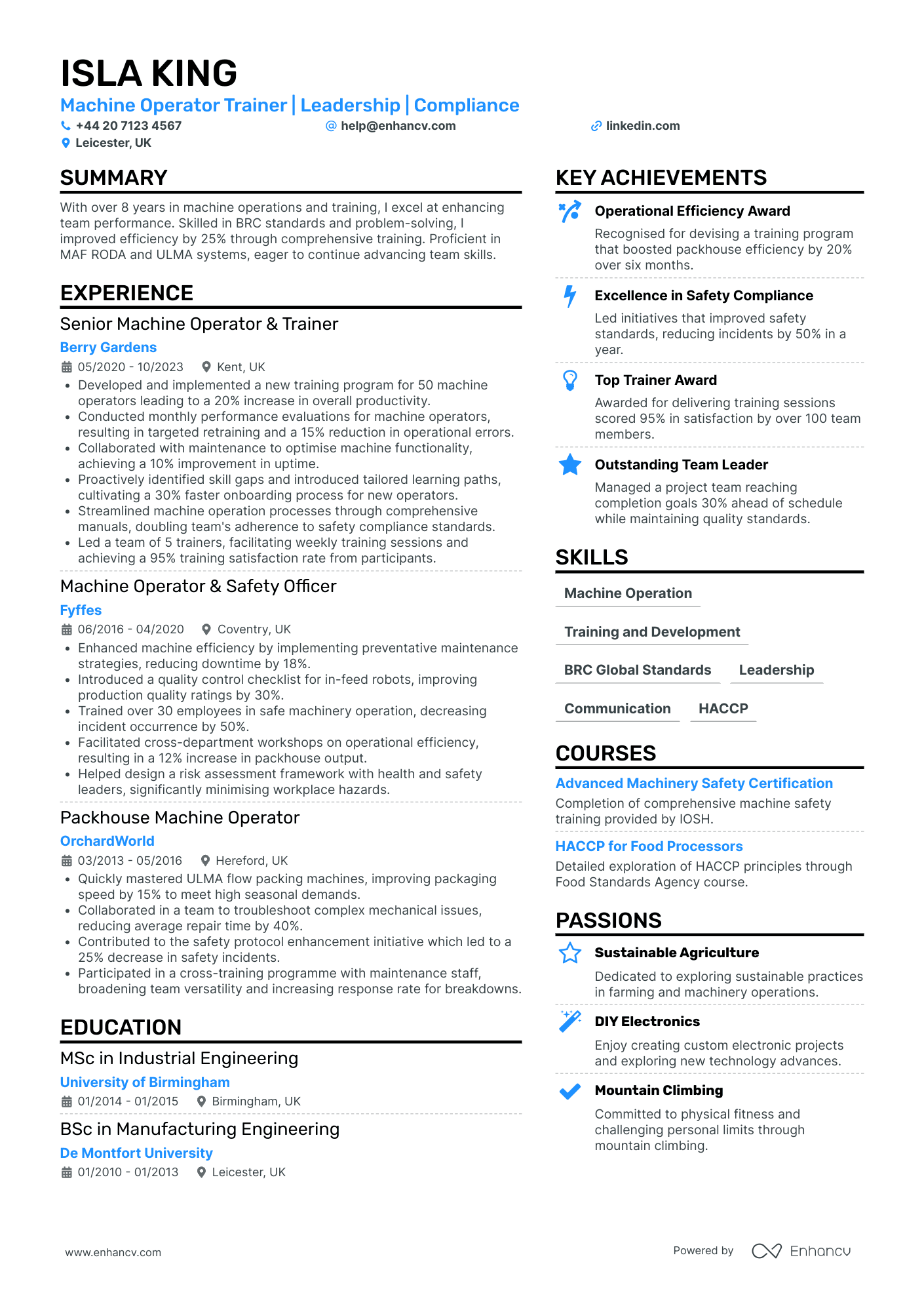 Machine Operator CV example + guide [Land a top job]