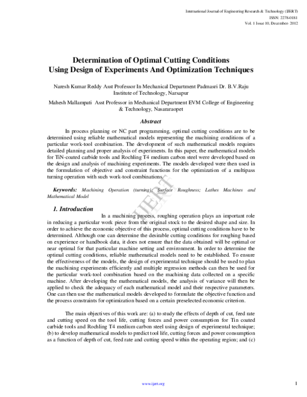Optimal Cutting Conditions in Machining | PDF | Coefficient Of ...