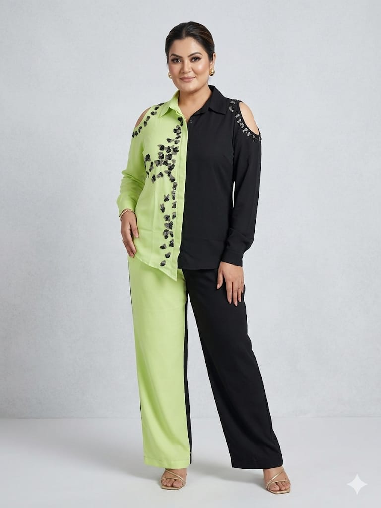 Dual Tone Lime & Black Sequin Cord Set (Crepe) – design.machine1