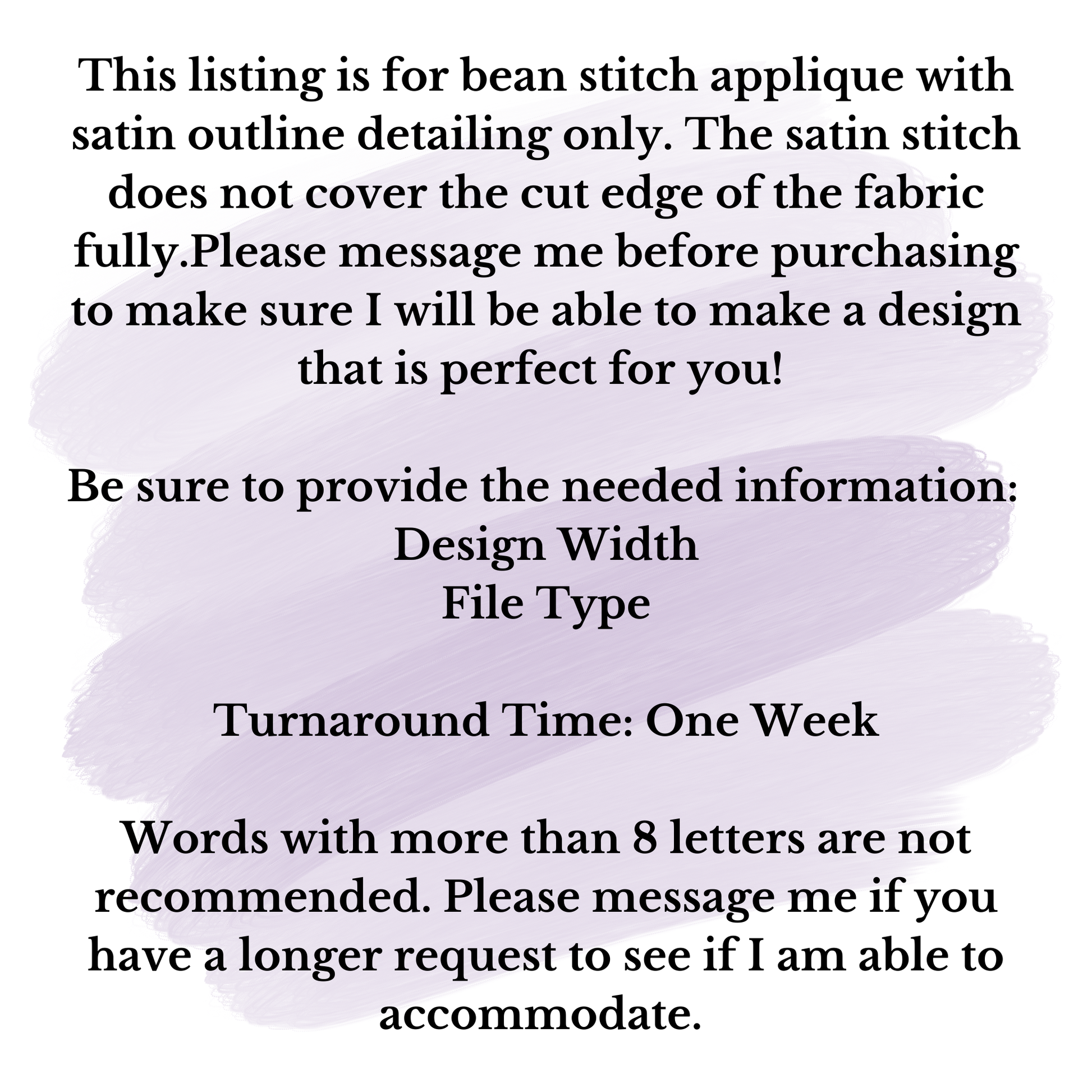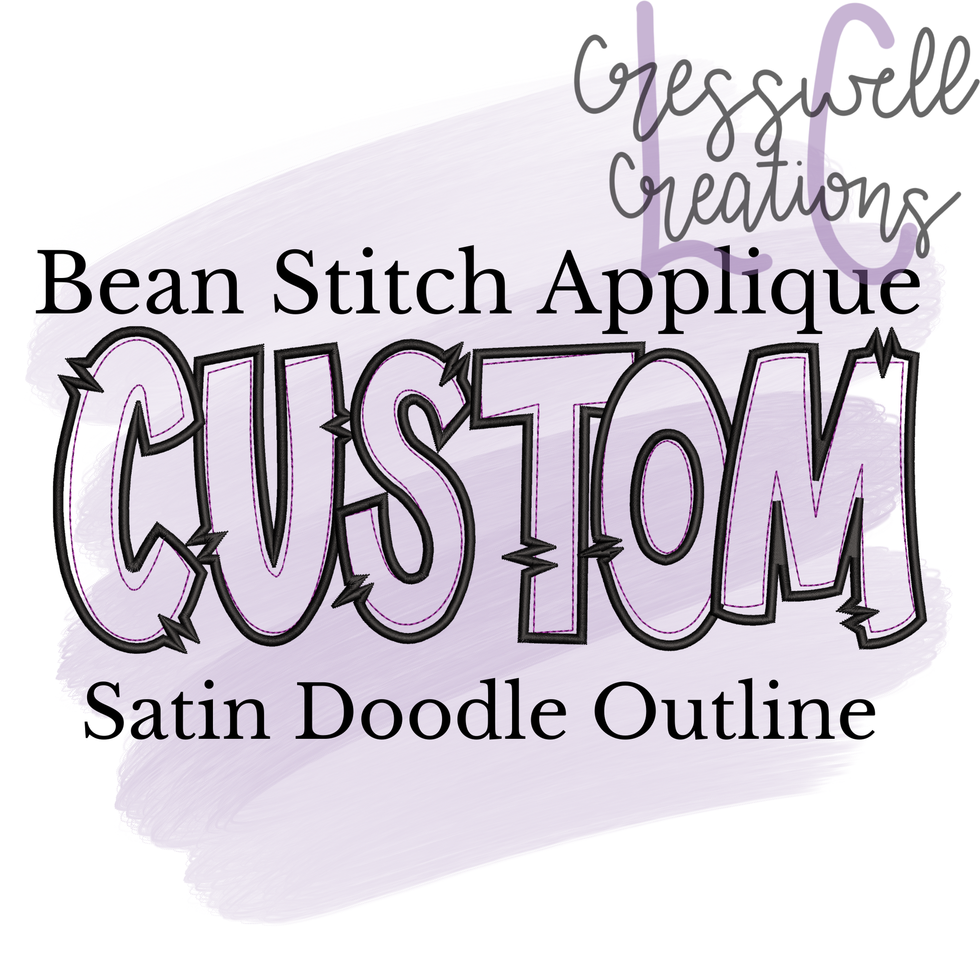 Custom Bean Stitch Applique With Satin Doodle Outline Machine Embroide ...
