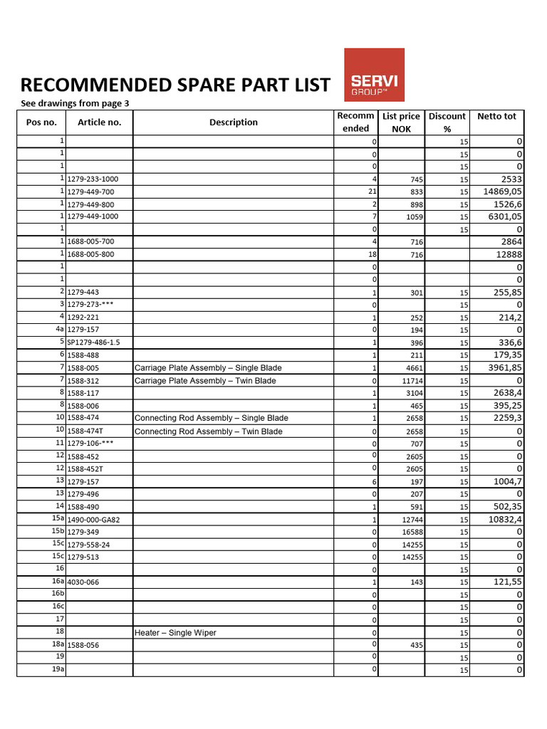 Recommended Spare Part List NB380 A1 | PDF | Mechanical Engineering ...