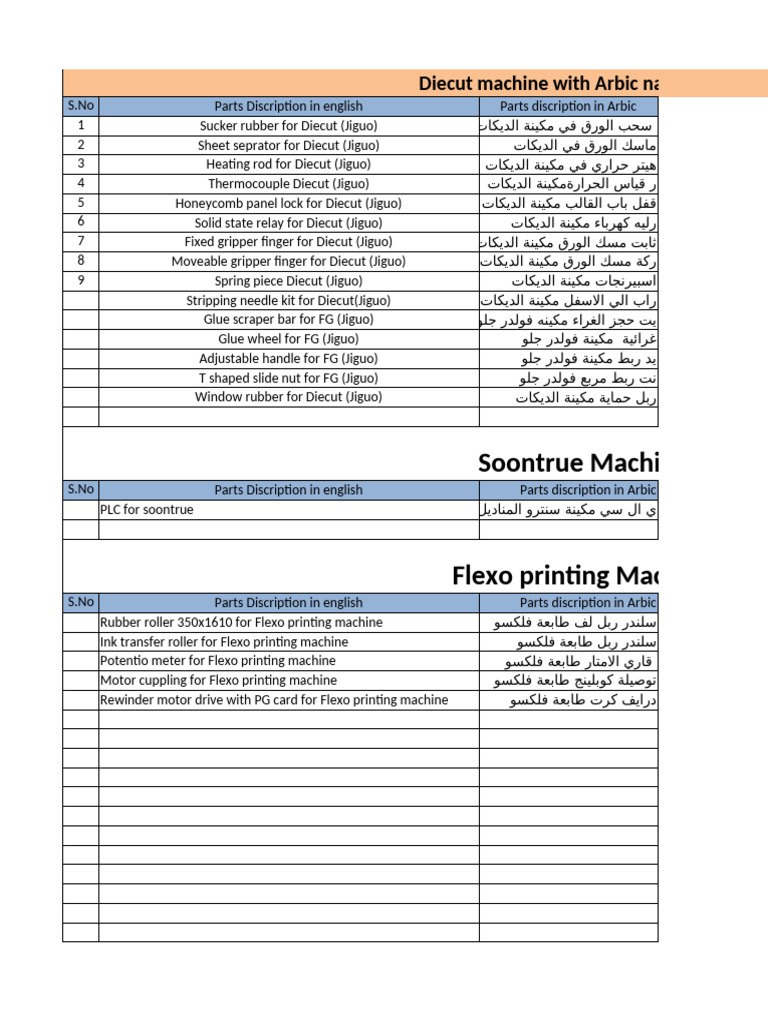 Machines Spare Parts List. Soontrue and Diecut | PDF