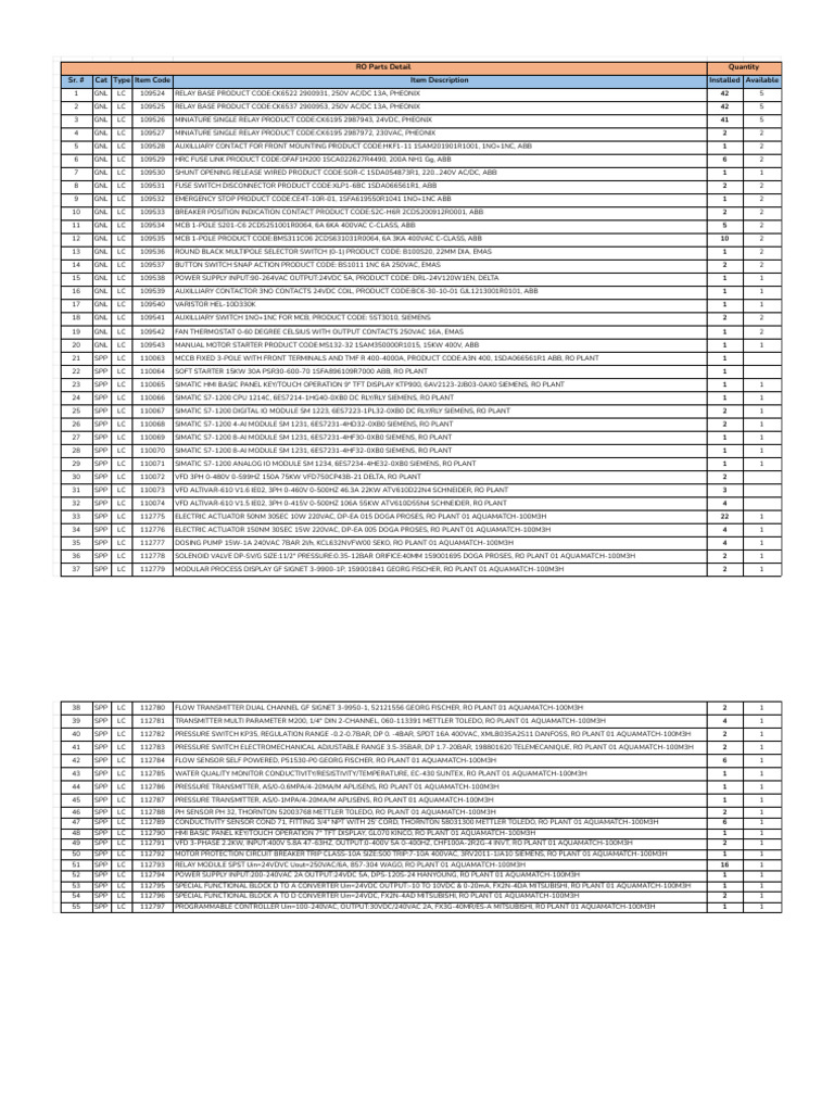 Machines Parts List | PDF | Fuse (Electrical) | Relay