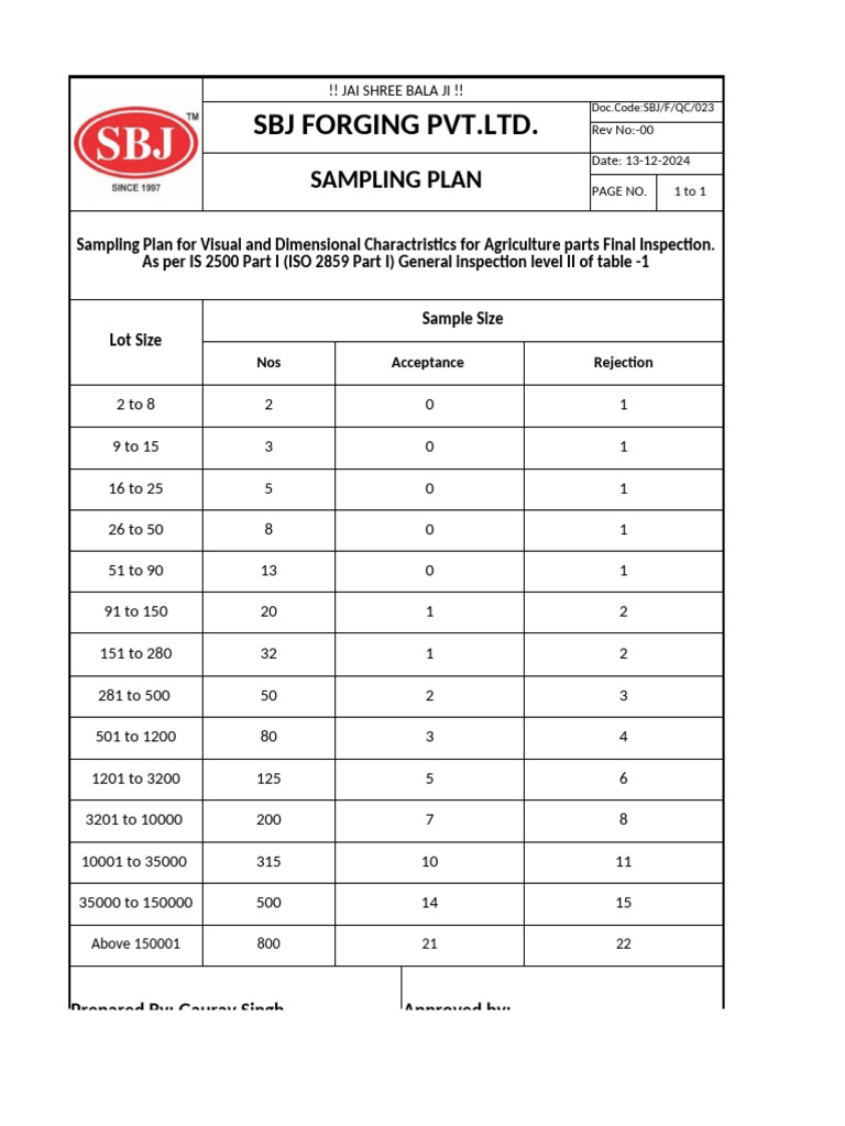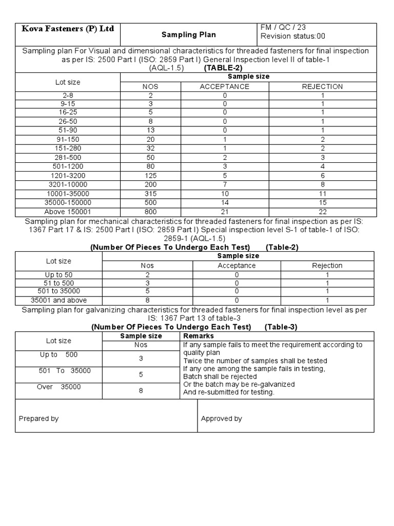 Kova Fasteners (P) LTD: Sampling Plan | PDF | Business Process ...