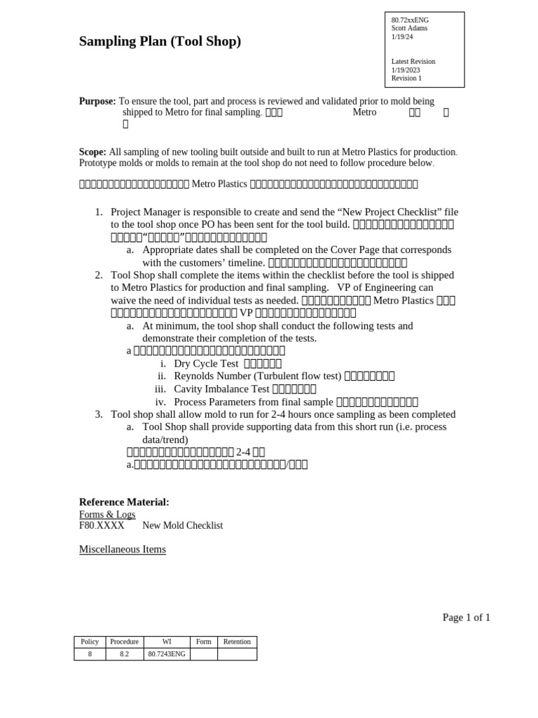 80.72xxENG-Sampling-Plan - TOOL SHOP - SA 1-19-24 | PDF
