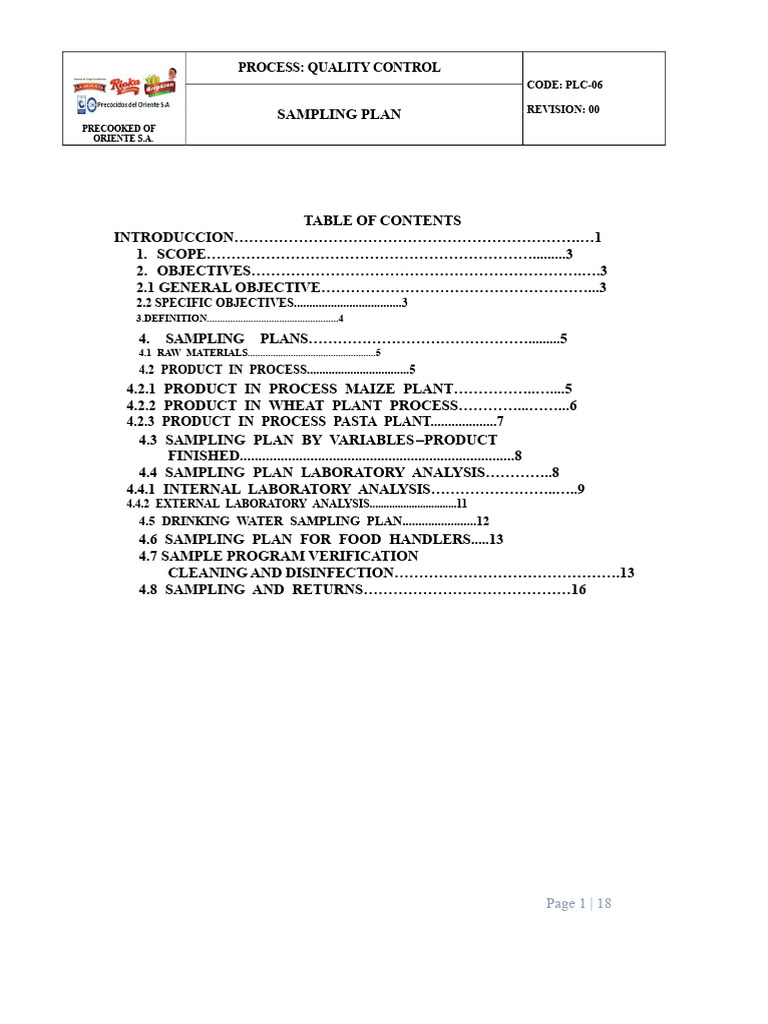 sampling plan example for a food company | PDF | Sampling (Statistics ...