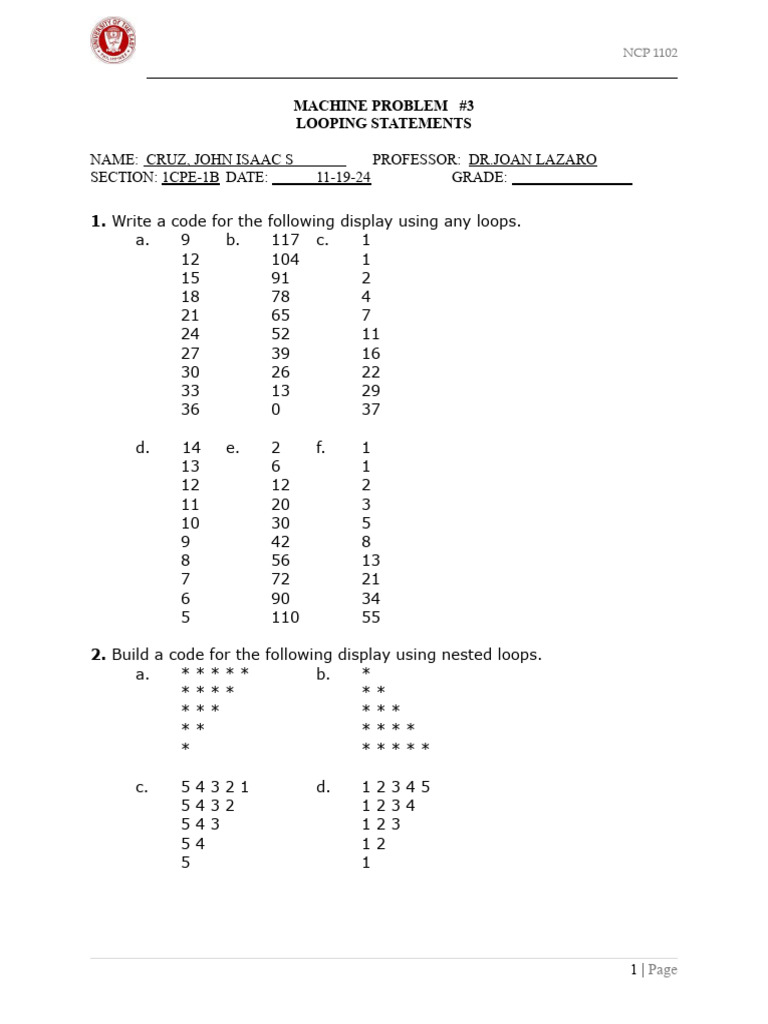 Machine Problem 3 - NCP 1102 | PDF | Computer Programming | Mathematics